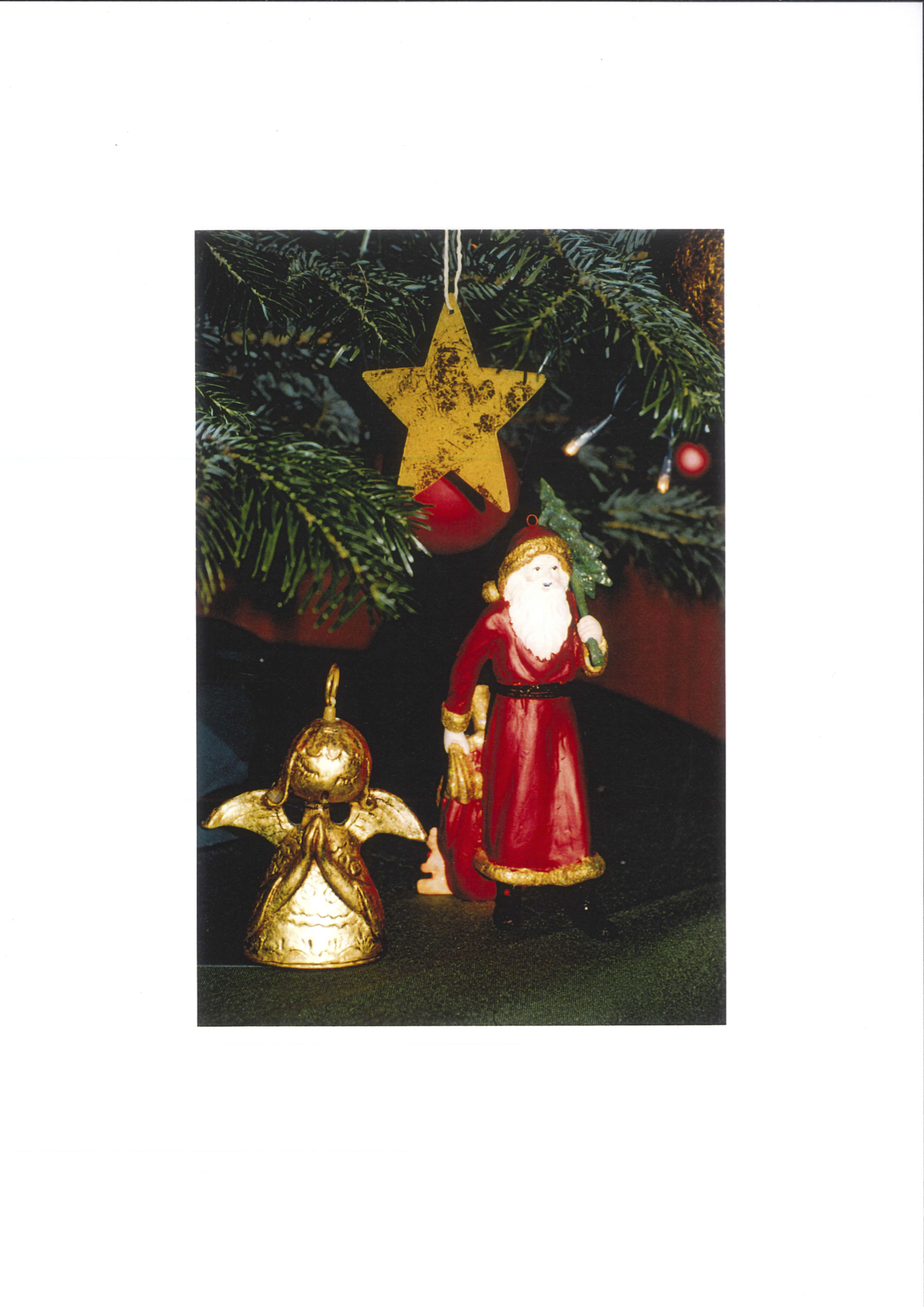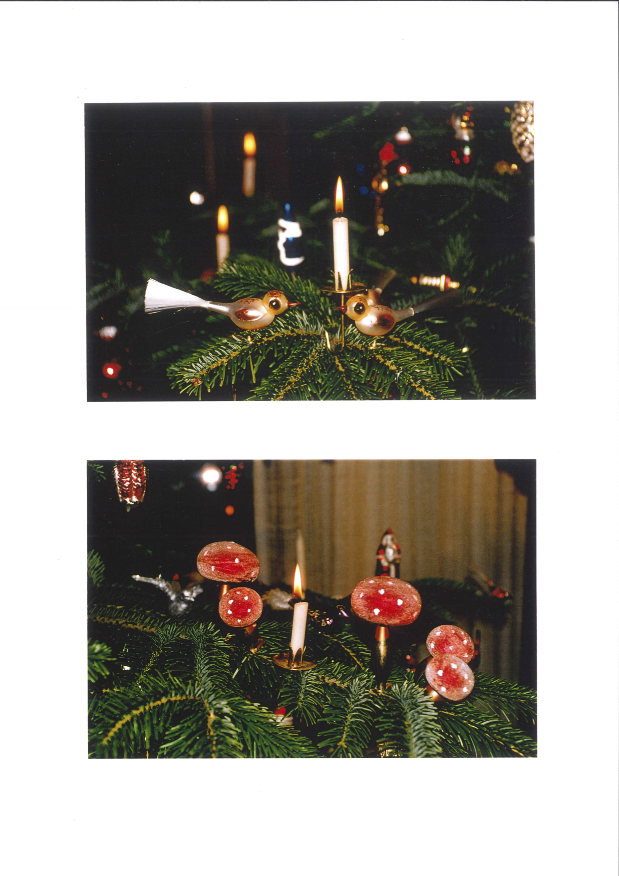 Ursprünglich wollte ich nur die „echten“ Weihnachtsbäume festhalten, d.h. solche, die natürlich sind und richtige Kerzen aus Stearin oder Wachs tragen. Ich sah auch den Trend der künstlichen, der Kunststoffbäume kommen. Von Jahr zu Jahr fanden mehr Leute Gefallen an deren makelloser und pflegeleichter Gestalt. Auch die Kerzen wurden mehr und mehr durch elektrische ersetzt; man hielt das alles für viel praktischer. Für mich war es damals noch ein kleiner Schock, als mich eine benachbarte Freundin per Telefon einlud mit „Komm‘ doch rüber, wir trinken eine Tasse Kaffee miteinander und knipsen den Weihnachtsbaum an.“ Den Weihnachtsbaum anknipsen? War das nicht jeweils – auch nach dem 24. Dezember – ein ganz besonderer, feierlicher Augenblick, wenn die Kerzen eine nach der anderen angezündet wurden und dann ihr warmes Licht den Raum erfüllte?
